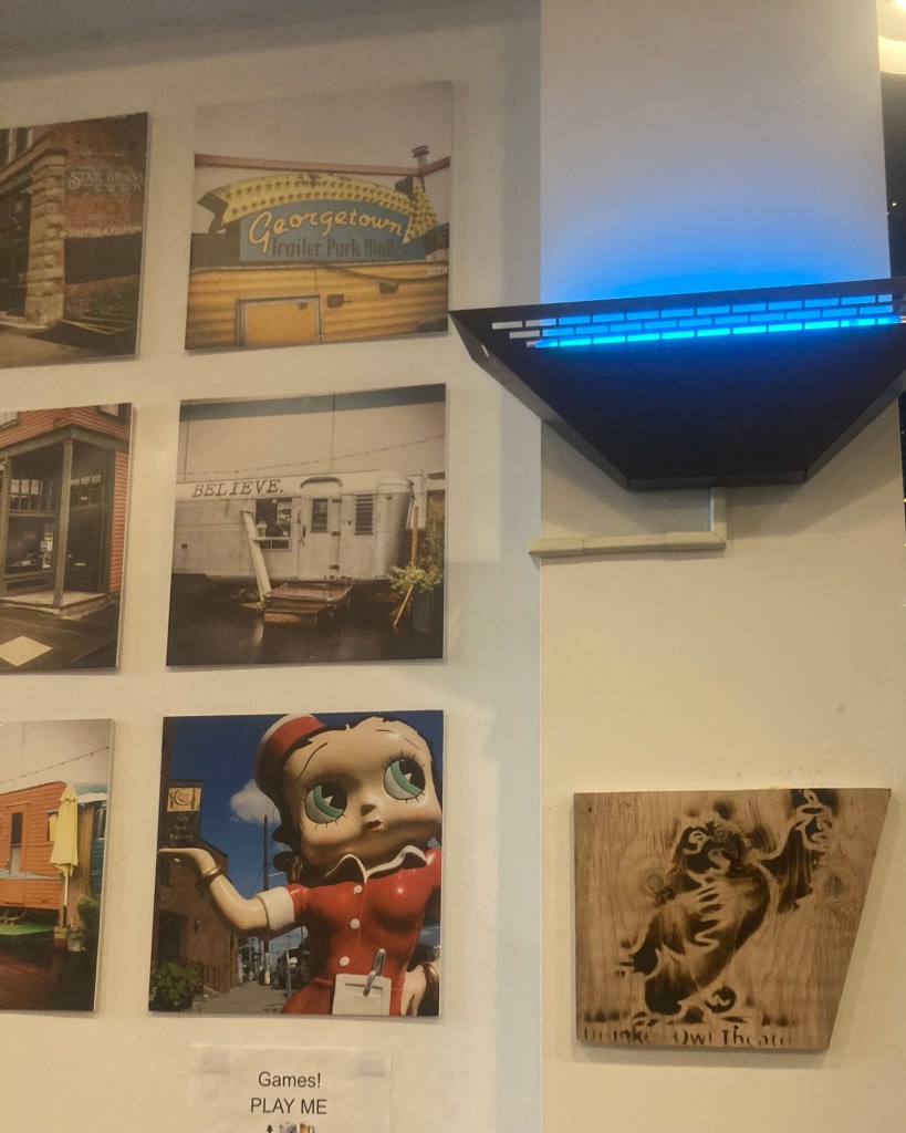 Imagine my joy when I saw it mounted on the wall of the brewery, in a prominent spot near a montage of Georgetown establishments! Drunken Owl Theatre has hit the big time!