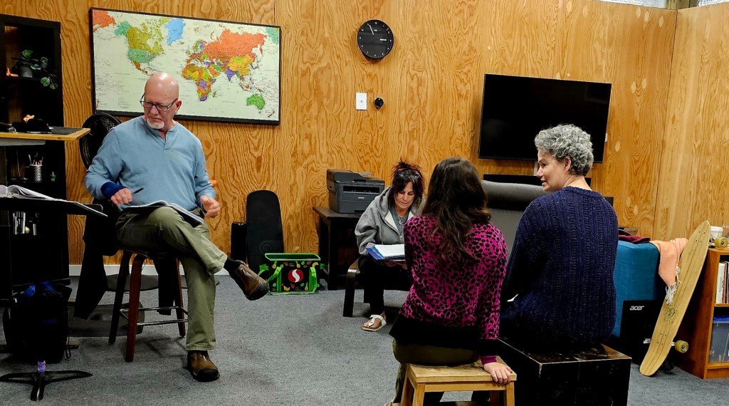 Monique Preston and Brynne Garman rehearse “Let Go Now” by Pamela Hobart Carter.