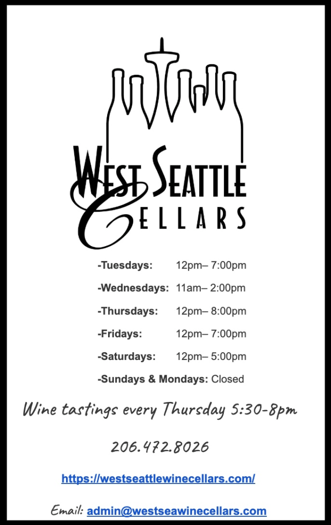 Located a few blocks north of the Morgan Junction, West Seattle Wine Cellars offers a wide selection of wines—from right here in the Northwest, to wine-producing countries throughout the world—in price ranges to match every budget. We also offer a variety of fun and informative ways to taste, learn, enjoy, and expand your wine horizons. Stop in, explore our wines, and let us help you find something perfect for you!