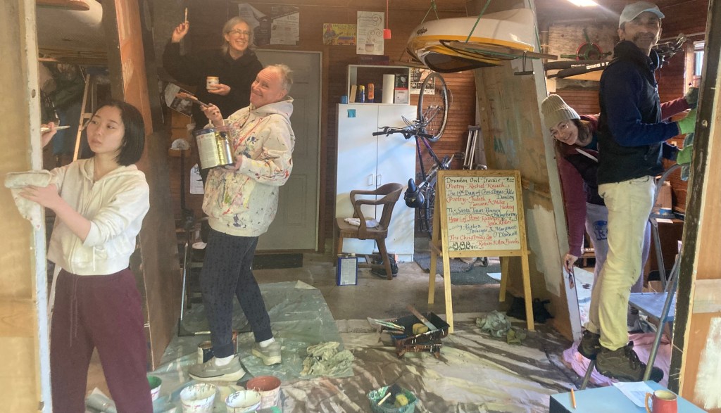 Our set painting crew, from left: Misaki Teranishi, Pam Carter (designer), Mike Hickey, Amanda Haselden, and Sumant Gupta.